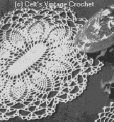 next ch 5 loop, ch 7, single shell in 2nd st of next ch 3 loop, ch 7, 1